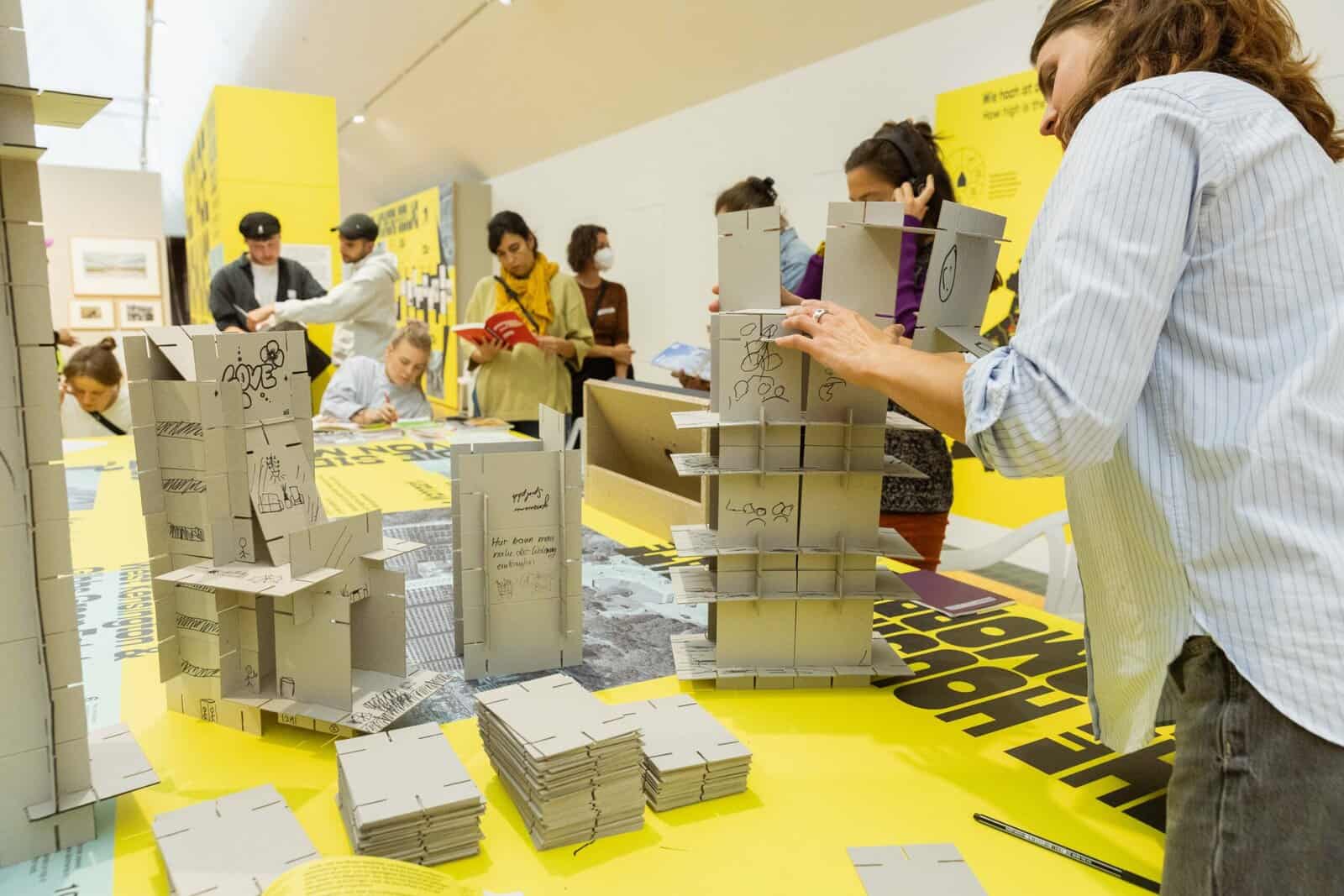 Im Workshopformat arbeiteten die Teilnehmenden an konkreten Forderungen für eine sozial-ökologische Wohnpolitik. Die Verbindung von Ausstellung, Diskussion und gestalterischer Praxis ermöglichte eine kollektive Verdichtung politischer Positionen. Die entstandenen Risodruck-Flugblätter fungierten als greifbares Ergebnis gemeinsamer Analyse und Positionierung.