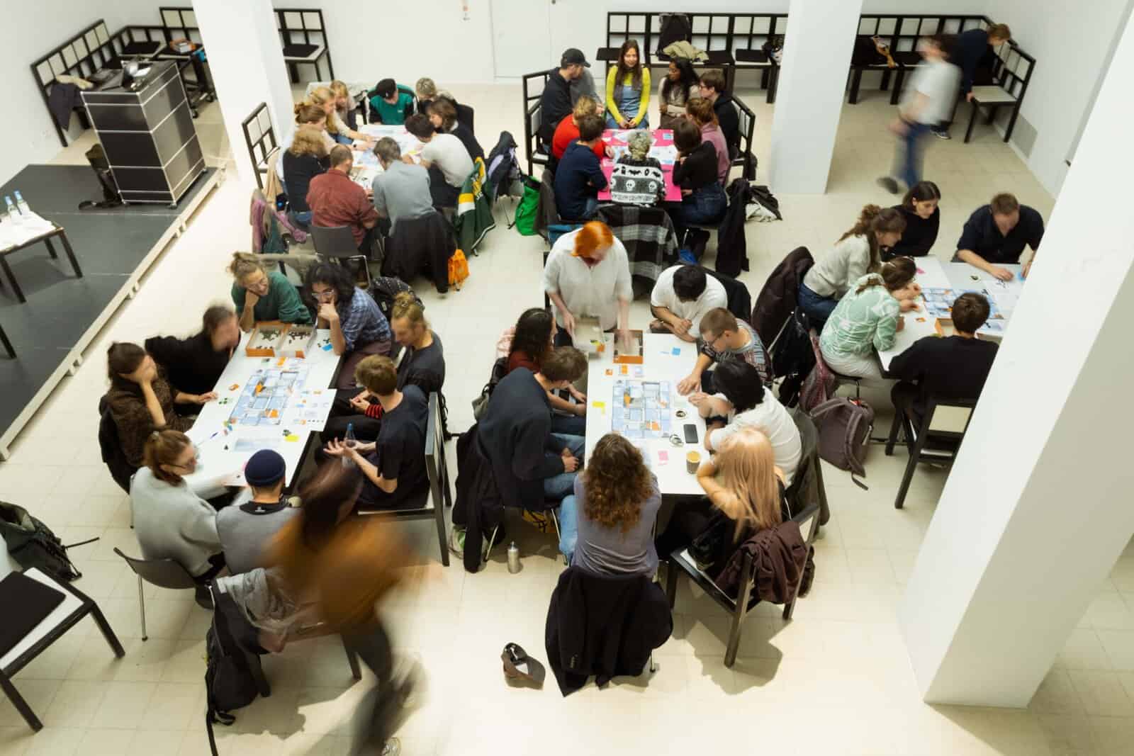 Die Spieler_innen schlüpften in verschiedene Rollen – von Investor_innen über Stadtverwalter_innen bis zu Umweltschützer_innen. Beim Brettspiel Plan.Spiel.Stadt (entwickelt vom DAM) wird gemeinsam die Zukunft einer Stadt gestaltet. Doch jede Entscheidung hat Konsequenzen: Welche Bauprojekte werden umgesetzt? Wo muss verhandelt werden? Wie lassen sich Konflikte lösen? Ziel ist es, eine funktionierende Stadt zu erschaffen, in der niemand auf der Strecke bleibt. Dabei konnte hautnah erlebt werden, wie Interessenskonflikte, Kompromisse und strategische Überlegungen das Stadtbild prägen. In einem einführenden Vortrag zeigte der Stadtforscher Laurenz Blaser beispielhaft Potenziale auf, Städte spielerisch zu erkunden, zu planen und wahrzunehmen.