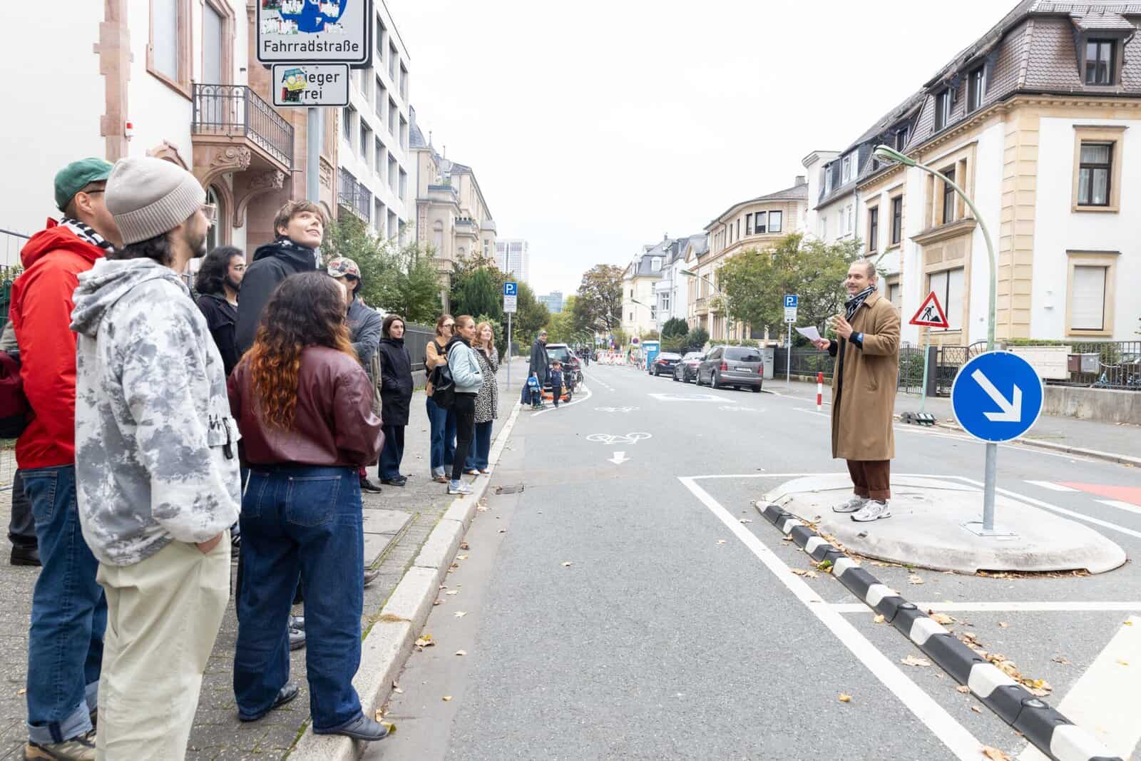 Welche Impulse aus dem Jubiläumsjahr zum Neuen Frankfurt und der Herbstakademie nehmen wir für eine Stadt mit, bei der Sorge und Gemeinwohl im Zentrum stehen? Zum Abschluss der Herbstakademie haben die Seminarteilnehmer_innen einem öffentlichen Publikum im Güneş Theater ihre Prozesse und Ergebnisse präsentiert: Wodurch kann eine Koproduktion von Stadt gelingen? Was ist heute ein Lösungsansatz für das Neue Neue Frankfurt? Wie können öffentliche Räume als Commons gestaltet werden? Welche Zusammenhänge bestehen zwischen den vier Elementen und städtischer Sorge? Wie können Küchen vergemeinschaftet werden? Anschließend gab es mit der Pixel Kitchen eine Urban Revue mit kollektiver Verköstigung, Kleinkunst und Performancekunst.