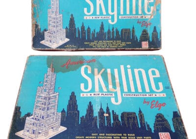 Die ,,American Skyline“-Baukästen aus der Mitte des 20. Jahrhunderts ermöglichen den Bau von US-amerikanischen Wolkenkratzern der 1920er–1940er Jahre. Anders als die bei Baukästen üblichen Massivbauten setzt „Skyline“ auf ein moderneres Skelettsystem. Foto: Sammlung Claus Krieger