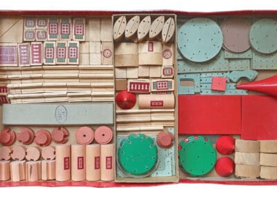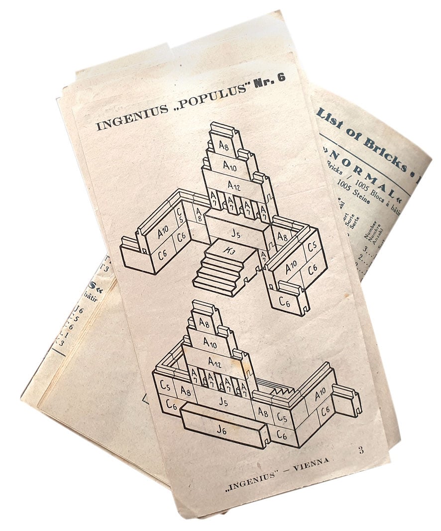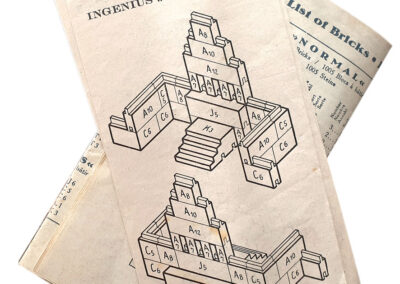 Der „Ingenius“-Baukasten wurde von dem Architekten Wilhelm Kreis in Zusammenarbeit mit Carl August Jüngst entwickelt. Laut Hersteller eigne sich das System nicht nur für Kinder, sondern auch für die Gestaltung von Filmkulissen und damit als Alternative zur Herstellung großer Filmbauten. Wilhelm Kreis’ monumentale Architekturentwürfe erwiesen sich als anschlussfähig für seine spätere Karriere im Nationalsozialismus. Foto: Sammlung Claus Krieger