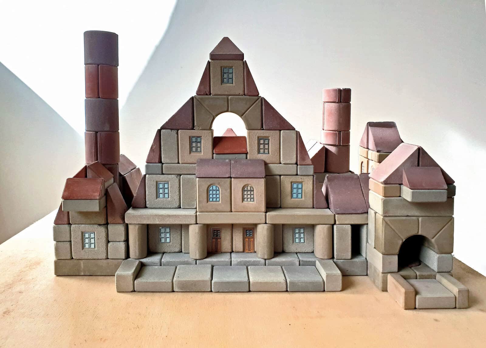 Der Steinbaukasten steht in der Tradition der „Anker“-Baukästen, die ab 1884 produziert wurden. Die Elemente solcher Kästen sind aus verschiedenen Naturprodukten zusammengesetzt und fühlen sich daher an wie echter Stein. Foto: Sammlung Claus Krieger