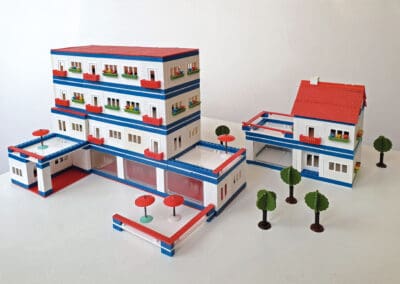 Lego kennt jedes Kind. Doch bevor das dänische Unternehmen den internationalen Markt erobern konnte, gab es Hunderte von Firmen, die ab etwa 1880 eine Vielfalt an Bauspielkästen herstellten. Das DAM hat die einmalige Chance, mit der Privatsammlung von Architekturbaukästen des Grafikers Claus Krieger eine Ausstellung zu realisieren, bei der die „gläserne Barriere“ durchbrochen wird, die üblicherweise im Museum die Objekte (aus konservatorischen Gründen) vom Publikum trennt. An etwa acht Stationen im Zentrum der Ausstellung kann gespielt, gebaut und Neues entwickelt werden.