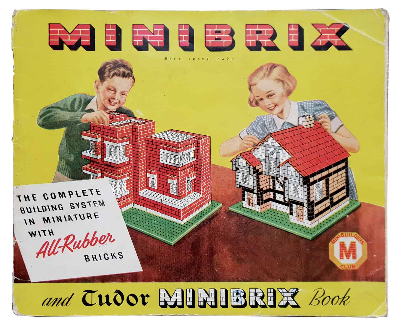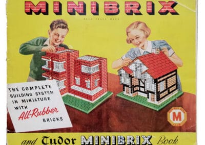,,Minibrix”-Baukästen wurden von 1935 bis in die 1970er Jahre produziert. Hergestellt wurden die Bausteine von der Premo Rubber Company, die ursprünglich Schuhabsätze und -Sohlen aus Gummi und zuvor aus Kautschuk herstellte. Neben den Baukästen produzierte die Firma auch Puppen, wie beispielsweise die ,,Miss Minibrix”. Foto: Sammlung Claus Krieger
