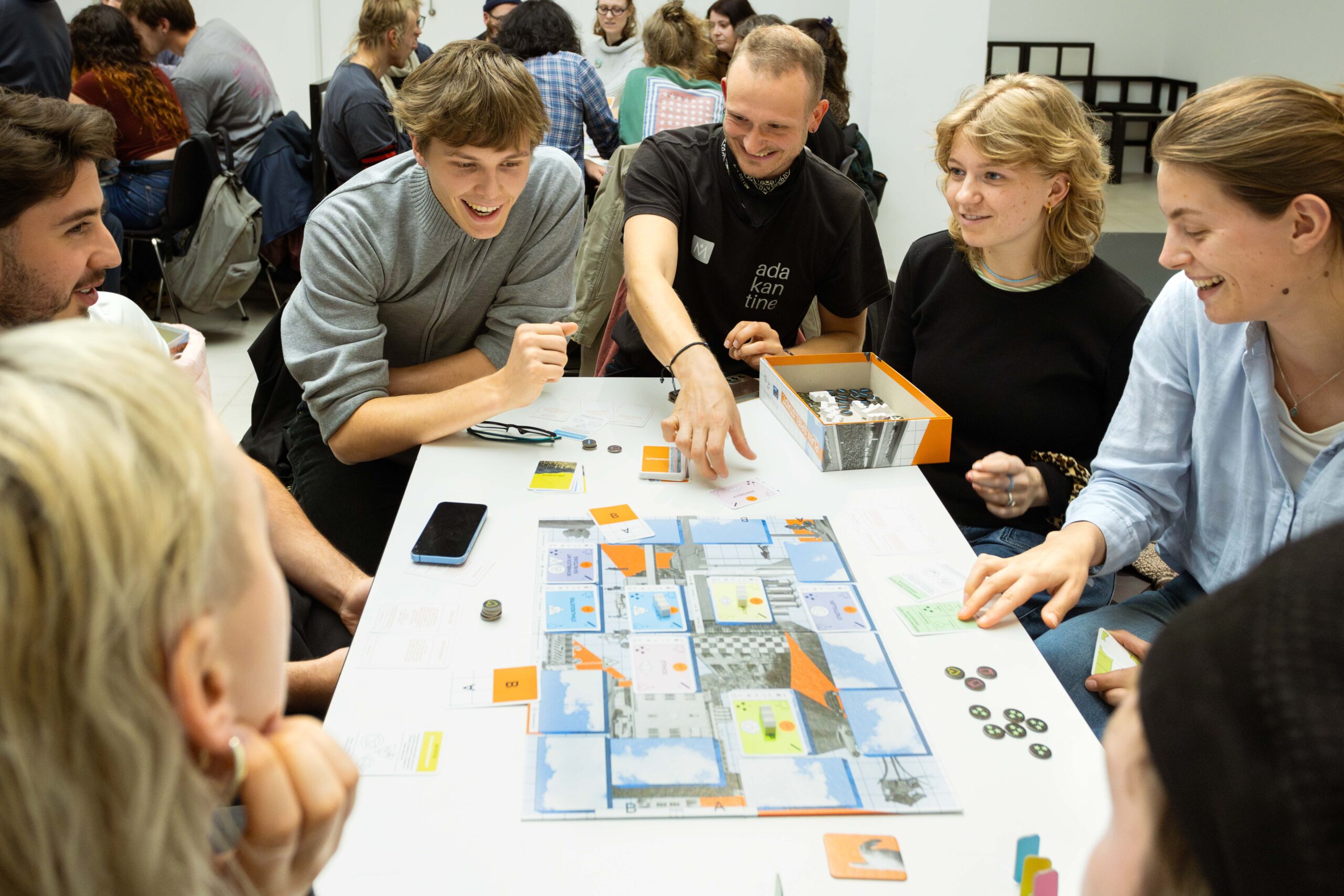 Das DAM hat zusammen mit dem Urban Equipe Verein und dem Lookout Verlag ein Spiel entwickelt zur Ausstellung „Stadt Bauen Heute?“. Bei „Plan.Spiel.Stadt“ nimmt man eine Rolle ein – als Stadtplaner*in, gemeinnützige Initiative, Investor*in, etc. – und baut dann gemeinsam (und manchmal auch gegeneinander) an einer Stadt.